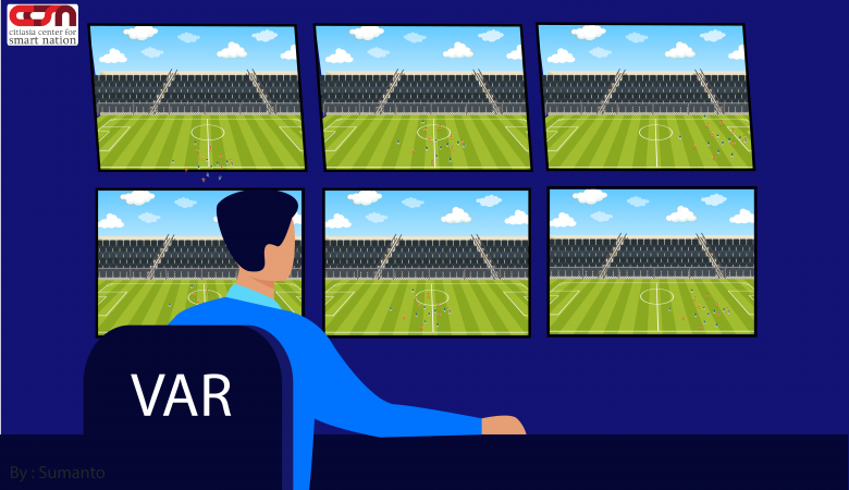Tetapi dari perkembangan teknologi pada alat olahraga diatas, ada satu teknologi yang menjadi perbincangan khalayak masyarakat di dunia sepak bola, yaitu teknologi Video Assistant Referee (VAR). Teknologi ini diperuntukan dalam membantu kinerja wasit di lapangan yang sistem kerjanya adalah untuk mengetahui benar atau salahnya sebuah pelanggaran. Teknologi VAR pertama kali digunakan ketika pertandingan piala dunia di Rusia 2018 (Salam, dkk, 2021). Video Assistant Referee adalah prosedur bantuan teknologi untuk membantu asisten wasit meninjau tayangan ulang sebuah insiden dalam permainan sepak bola, sebagai bahan pertimbangan untuk wasit utama. Fungsi VAR dalam sepak bola adalah untuk menegakkan peraturan pertandingan sepak bola (Laws of the Game) semaksimal mungkin, seperti dikutip dari panduan Dewan Asosiasi Sepak Bola Internasional (IFAB) (https://www.kompas.com/sports/).